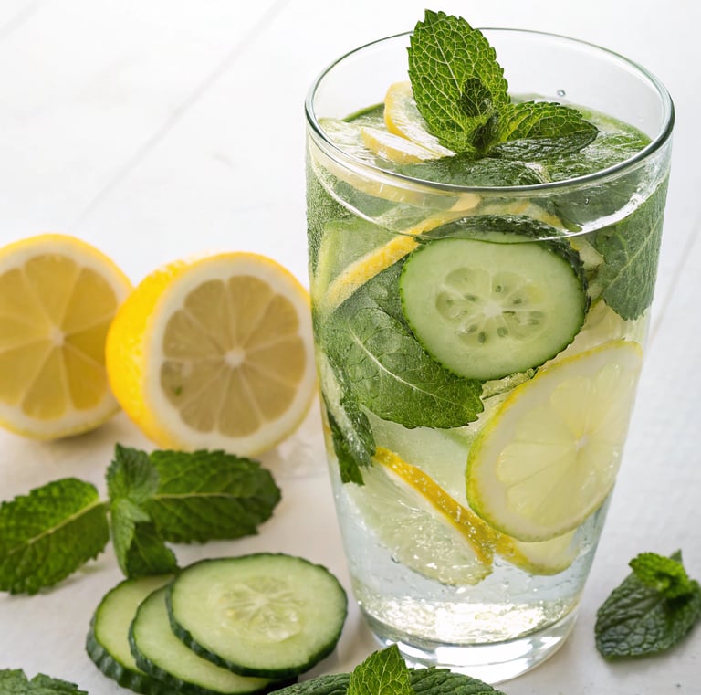 Descubra a água detox de limão, pepino e hortelã, uma bebida refrescante que desintoxica o corpo e ajuda na digestão. Experimente essa receita saudável e revitalize seu dia!