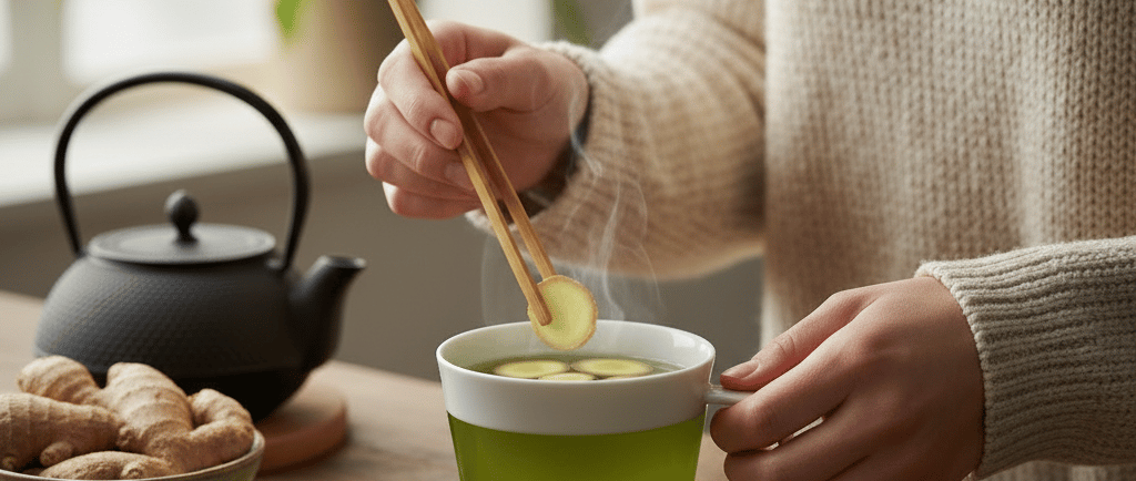 Assim que a água começar a ferver, acrescente as fatias de gengibre e deixe cozinhar por 5 minutos.